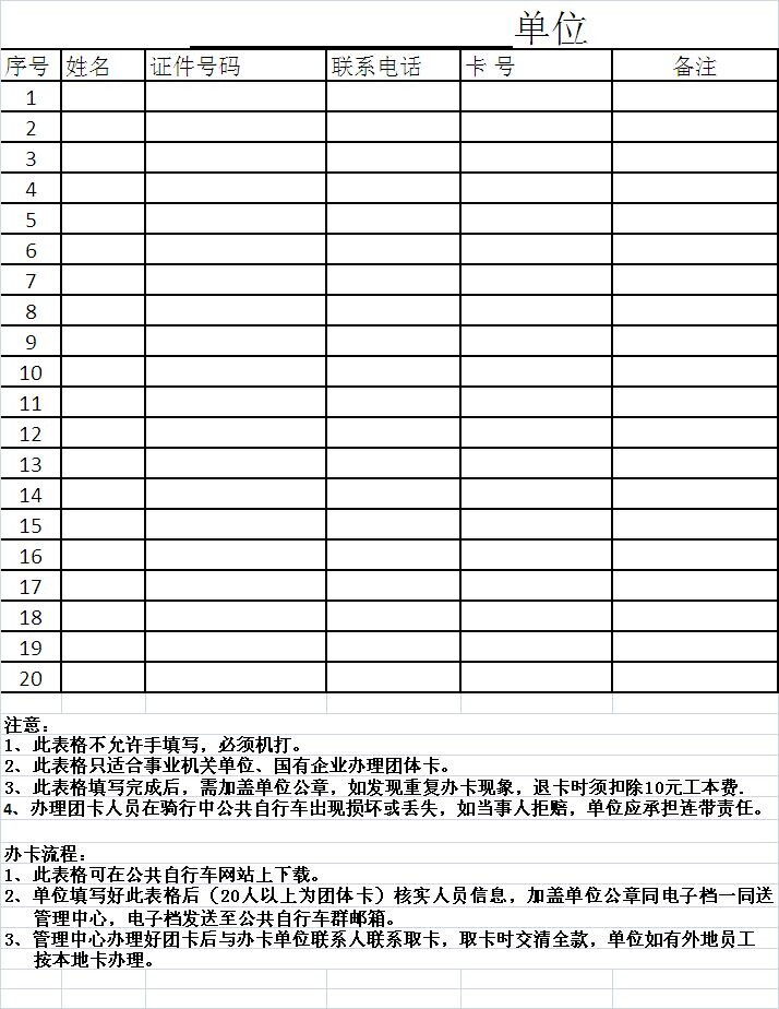辦團(tuán)體公共自行車卡,請按照以下要求辦理!