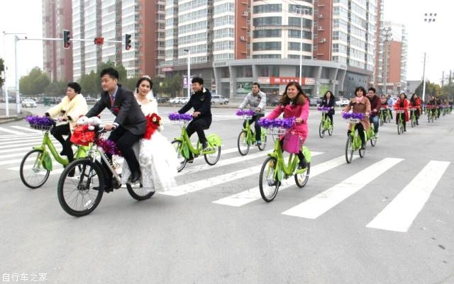 用公共自行車代替?zhèn)鹘y(tǒng)婚車,沒有豪車,沒有奢華的場面,但親友團們組成的自行車陣,也賺足了市民的眼球,贏得百分百的回頭率。在高檔婚車“熱”的當(dāng)下,低碳、環(huán)保的公共自行車迎親隊伍猶如雨后一抹新綠,讓人眼前一亮。這種浪漫的結(jié)婚方式讓婚禮變得更有意義。