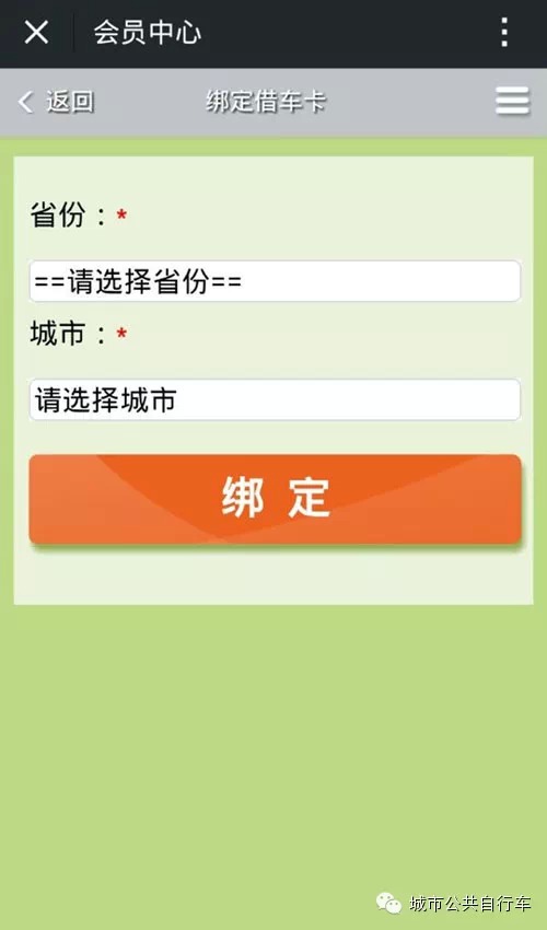 點擊我的借車卡→添加綁定→選擇省份和城市→綁定成功