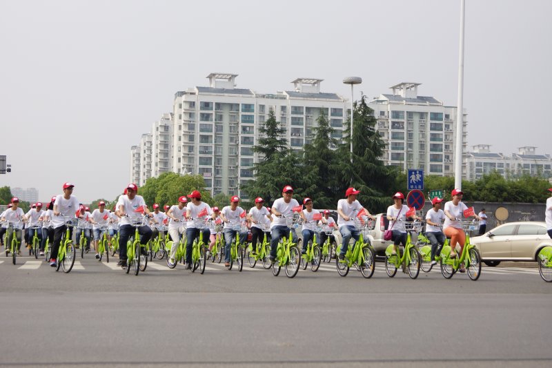 6月5日“世界環(huán)境日”當(dāng)天,相城區(qū)城管局為保障主題活動的順利開展,向活動主辦方區(qū)環(huán)保局提供了110輛公共自行車?;顒蝇F(xiàn)場來自區(qū)機(jī)關(guān)、黃埭中學(xué)、黃埭鎮(zhèn)、北橋街道、黃橋街道、太平街道、元和之春社區(qū)7支環(huán)保志愿者隊伍,身穿統(tǒng)一的志愿者服裝,騎上“小綠車”,開展了“向污染宣戰(zhàn)”的百人騎行宣傳活動,向市民宣傳低碳出行、綠色出行的生活理念。