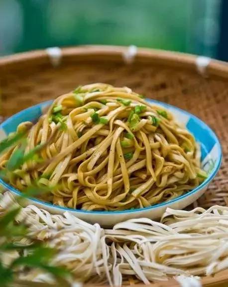 盛夏一到,蘇州人就要牽記風(fēng)扇涼面了。風(fēng)扇涼面一般從6月供應(yīng)到9月,是加了鴨蛋和堿水的小寬面。煮面方法也頗講究:先把面條蒸至六分熟,入沸水煮一下?lián)破?,拌少許食用油,用風(fēng)扇吹涼,再拌上燜肉原湯、糟油、豆芽等,吃起來爽滑不黏膩,清香有嚼勁!