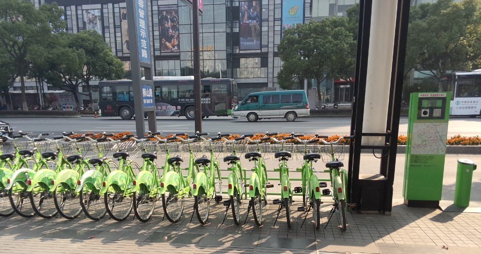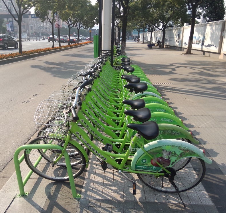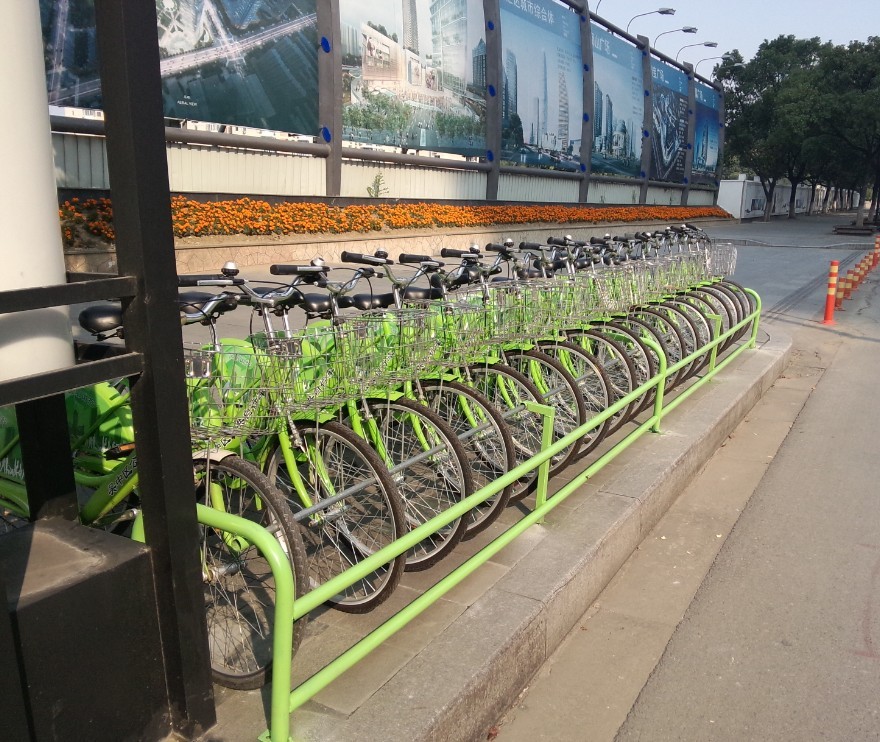 新區(qū)公共自行車綠色備車架試用